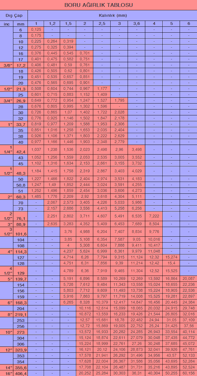 Dış Çap : 6 mm – 508 mm