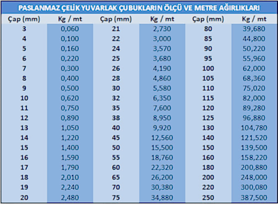 Uzunluk : 3000 mm – 6000 mm boy ( Özel ölçü kesimleriniz yapılır.)
