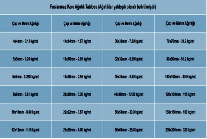 - Paslanmaz Çelik Kare
